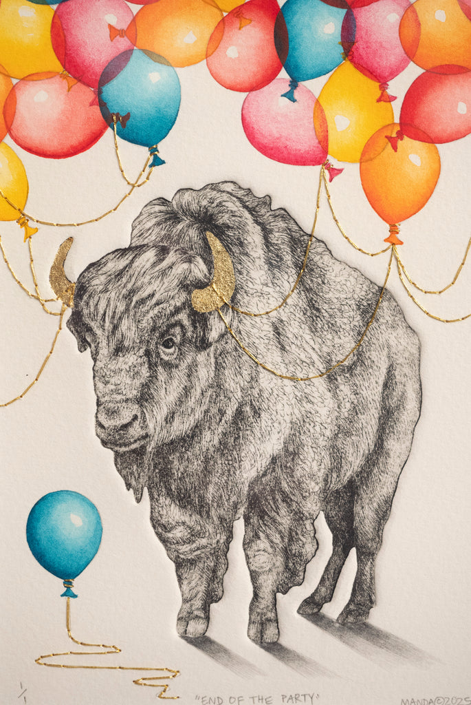 Original Intaglio Etching, hand stitching, pencil drawing, gold leaf, and hand painted. 5"x7" artwork in 8" x 10" mat framed under UV protected glass in a solid white wood frame (9"x11" in frame). Shipping included, shipping only available within the continental United States.